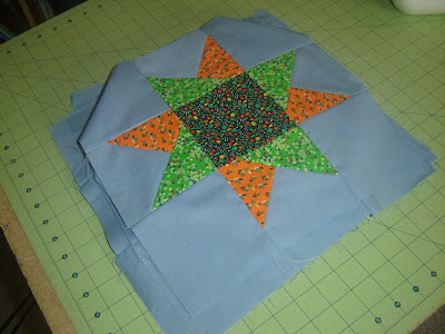 And here you will see the stars that I have been making with the same vintage fabrics. I decided that I might as well get some practice in before I spend the pretty pennies on the yummy fabrics. Both of these will be presents for family members for Christmas....if I can get them all done. If not, they'll get them later. :)